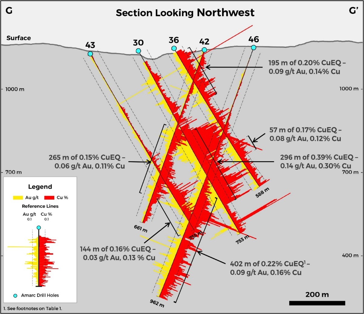 - 402.00 m of 0.16% Cu, 0.09 g/t Au and 1.2 g/t Ag, including