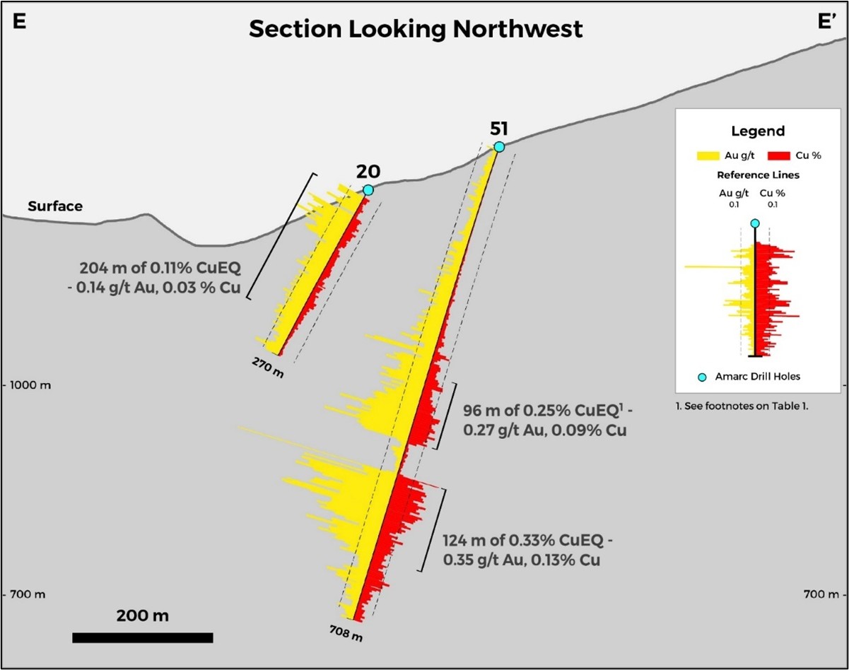 - 51.00 m of 0.32% Cu, 0.18 g/t Au and 1.8 g/t Ag