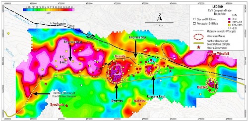 The Granite and Buzzer porphyry systems demonstrate that significant porphyry-style mineralization is present in the Greater Empress, and that further exploration surveys and drilling have the potential to make new porphyry discoveries, both inboard and outboard from the CPC contact.